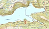 Den røde pilen viser hvor Statens vegvesen skal opparbeide delvis fossilfri anleggsplass for skredsikring på E39 ved Hornindalsvatnet.