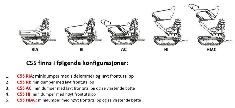 Importør Skjetne Maskin AS i Trøndelag med ny minidumper fra Cormidi, C55. Den tar over etter C50 som ble faset ut ved fabrikken i Italia etter å ha blitt produsert i 15 år.