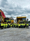 STOR STAS: Totalt er det snaut 70 personer i bruddene i Rekefjord, og mange av dem stilte opp på bilde i forbindelse med overleveringen av nye Komatsu-kjemper.