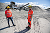 PRODUKSJON: Stian Hoffart (t.v.) er driftsdirektør i Sibelco Nordic mens Øyvind Thingelstad har 40 års fartstid i sandtaket i Vestre Spone.Braata, Espen