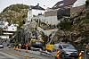 Med innspenning mener han at fjellet går i en bue innover, hvilket betyr at det er mer krevende å splitte det, fordi fjellet ikke har noen steder å gå. Boringen må derfor være tett i slike områder, og man må ta bit for bit. I dette området er det heller ikke tillatt med hydraulisk hammer på grunn av trafikken som går forbi rett ved siden av. Dette for å ikke sprute stein på biler som kjører forbi.