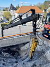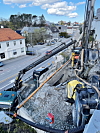 Da A&T besøkte han i mai, jobbet han for entreprenøren Magnar Sivertsen AS. Rett ved en trafikkert vei, bare noen hundre meter fra Handelshøyskolen, måtte en del fjell fjernes for å skjøte sammen vann- og avløpsledninger som kom ned fra et boligfelt. Sandven anslår at total mengde fjell som skulle bort var 40–50 m³, altså ikke så mye, men likevel en del ettersom alt skal splittes. Ikke minst var det ganske mange høydemeter i prosjektet slik at maskiner måtte heises opp på et platå for å komme til i deler av prosjektet.
