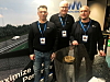 PRESENTASJON: Glassfiberarmerte nett for asfaltforsterkning i ruller ble presentert på fellesstanden til danske S&P og Arctic Asfalt. Fra v. Henrik Nielsen, Jens Adamsen og Cato Rude-Hansen.