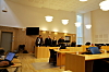 AGDER TINGRETT: Saken mellom seks banker som vil slå tidligere Agder Gruppen-gründer Svein Arne Uppstad konkurs, er i gang. Her er motpartene stilt opp med bankene til venstre og Uppstad og hans forsvarere til høyre. Dommer Ronny Rosenvold på vei inn bak til venstre i bildet.Anlegg&Transport