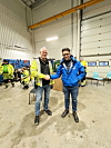 STILLER OPP: Fra venstre Harry Hansen, driftsleder Avfall Sør på Støleheia anlegg som stiller anlegget deres til disposisjon for andre å teste. Her med Kjell Arvid Løyning, distriktssjef Volvo Maskin, som hadde med en ekstra elektrisk litt mindre maskin til arrangementet. Foto: Lars Pedersen