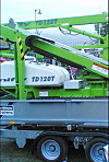 DEN FØRSTE: Her er den første liften (og tilhengeren) som de skulle bruke litt selv, men som var leid ut støtt og stadig. Løsningen ble å kjøpe en til, og så balla det på seg.Skjermdump: Sørby Utleie / facebook-video