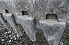 Slik ser tannsystemet ut på nært hold ferdig montert på ei gravemaskinskuffe.