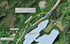 KART OVER OMKJØRINGEN: Kartet viser E6-traseen som er tatt av kvikkleireskredet (i oransje) og omkjøringen (i gult).
