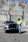 Teknisk sjef for Lundhs sine seks avdelinger rundt Larvik, Anders Skogly, viser A & T rundt på Klåstad-bruddet som er et av Europas største steinbrudd. I tillegg til de seks bruddene som tar ut Larvikitt, har Lundhs også et brudd i Sirevåg utenfor Egersund.