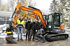 MARKERING: Overleveringen av Norges første Develon DX63-7. Fra venstre er Jon Boye Lie i Lie Maskin AS (forhandler for Rosendal Maskin AS), Christian Rief (prosjektleder Dyrud Maskin), Runar Dyrud (daglig leder i Dyrud Maskin) og Lukasz Wajda (maskinfører Dyrud Maskin).