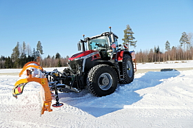 Massey Ferguson sin nye store modell 9S.425 var for første gang med på en vinterdemo med norsk oppsett. Traktoren sto ikke mange sekundene i ro om gangen og var blant de mest populære med Aebi Schmidt D70 brøyteskjær.