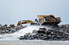 Det tilsvarer rundt 50.000 turer for tiptruckene her på anlegget. Men fortsatt skal de kjøre nesten 40.000 turer før hele sjøfyllingen som skal huse deler av rullebanen på nye Bodø lufthavn er ferdig før årsskiftet.