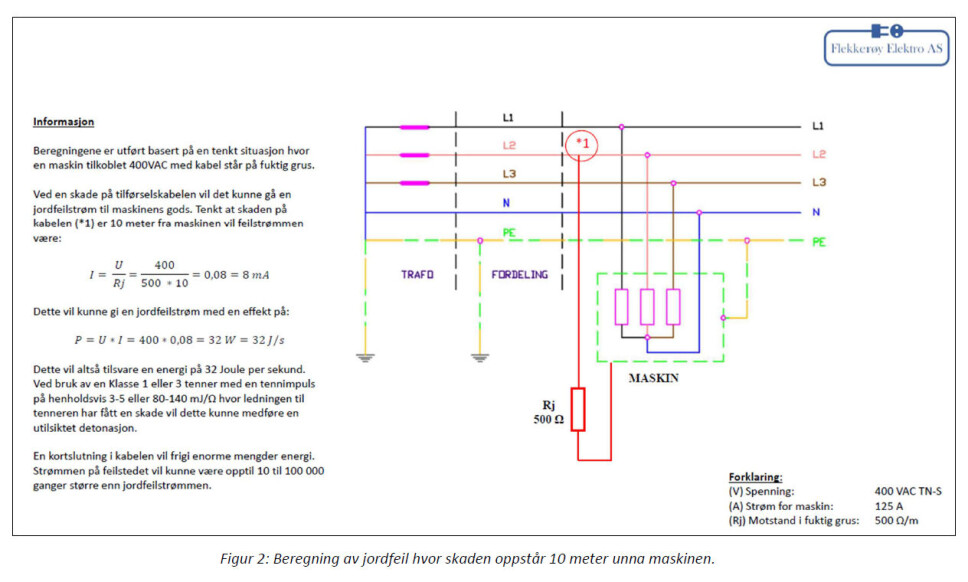 Beregningene har vist at ved kortslutning på strømkabel til en elektrisk maskin, kortslutning internt på en maskin, jordfeil og/eller krypstrøm, vil dette være nok elektrisk kraft til utilsiktet å kunne antenne elektriske tennsystemer i alle de vanligste tennklassene som finnes i dagens marked, og som har vært benyttet i stor grad i tidligere år.