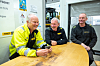 GOD STEMNING: Latteren sitter løst rundt kaffebordet når Øystein Grave (t. v.) og Olav Strande river litt kjeft til underholdning for Even Røine og de andre kollegaene.Braata, Espen