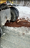 Denne slangen ble skiftet for ca. ett år siden av maskinleverandør. Pressing av slange har vært for dårlig slik at denne nå revnet. Slangen ble ikke levert av leverandør, men av slangevakt. Det undersøkes nå om reklamasjon på denne mot leverandør, opplyser Lian.