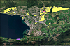 UTBYGGING: Utsnitt fra det digitale datasettet som viser planlagt utbygging i Norge. Eksempel fra Nordfjordeid sentrum, Stad kommune, Vestland fylke. Fargene viser til arealformål for områder som er planlagt utbygd, men ennå ikke bygd ut.