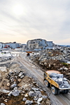 – Faktisk er det kun rundt fem prosent av steinen som skjæres ut her i steinbruddet som kan brukes til benkeplater. Resten er å regne for skrapstein, som ellers ikke ville blitt brukt til noe. Det er denne skrapsteinen vi bruker videre til å lage våre belegningssteiner, heller og kantstein, sier Borsheim.