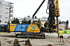 VERDENS FØRSTE: Denne batteridrevne peleriggen er verdens første som tas i bruk. Produsent er finske Junttan, og kunde er det danske konsernet Aarsleff. I dette prosjektet er nederste pele en trestamme.