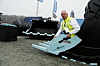 GARDA SIKRING: Midt i debatten om gummigranulater på norske fotballbaner, viste Garda Sikring AS en inngangsportal for kunstgressbaner med koster i bunn og rist og oppsamlerkasse under. Antall koster kan økes ved behov. Dette er et egenutviklet system og produseres ved selskapets anlegg i Haugesund. I bakgrunnen i bildet et øko-vennlig byggegjerde med føtter i resirkulerte materialer.Anlegg&Transport