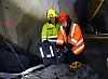 FØRSTE: Bergsprenger Christian Solheim fra Implenia/Stangeland hjalp Kvitsøy-ordfører Kjell André Nordbø til å trykke på knappen på den første salven på den største Rogfast-kontrakten