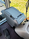 Det er flere som har bestilt S9 i svart matt som den ene kundetraktoren som ble vist her på kundearrangementet. Den var også levert med gullakkerte felger. Den har fem tonns kapasitet foran og 12-tons løftekapasitet bak. Alle traktorene i Norge blir levert med frontuttak, blant annet på grunn av at vi kjører med snøfresere. Det er verktøykasse på høyre side og kan bestilles med ferdig verktøykasse. Eksospotta ligger bak høyre stolpe.
