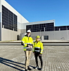 GRUNNARBEIDET VIKTIG: Thomas Hammer Tveit, prosjektsjef Logistic Contractor Norge AS og Malin Sjursheim, SL Stenlegging AS, forteller at grunnarbeidet og materialvalg i grunnen er avgjørende for et godt resultat.