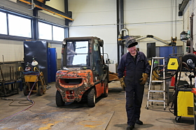 GODT HUMØR: Olav Odden på Olav Odden Sveiseverksted var i godt humør og driv. Olav Odden Sveiseverksted, som holder til i samme bygg, har siden 2017 vært en del av Overseas Trading Invest AS, som også eier bygget og OilQuick Norge AS.Fredrik Saugstad