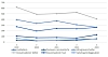 Fig. 1 – Viser utviklingen for 2. kvartal i 2019 – 2023 for de største undergruppene av anleggsmaskinstatistikken.