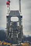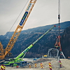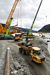 Liebherr-maskinen har bare gjort fire løft siden januar, men disse er i gjengjeld svært viktige poengterer han. Blant annet har den heist på plass senkekassen på 370 tonn som var det tyngste løftet på prosjektet. Den har også løftet på plass forskaling og armering inne i senkekassene i ett løft, noe som sparte mye tid og jobb, blant annet mange sparte dykkertimer. Til slutt vil den ha gjort seks løft når begge bruelementene er heist på plass.