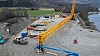 Kranbommen, som skal løfte bruelementene, har en lengde på 84 meter. Den har en løftekapasitet på 329 tonn på 58 meter, som er avstanden fra kransenter til løftet.