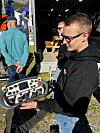FJERNKONTROLL: Servicemekaniker Emil Glømmen viser fjernkontrollen som kan styre en hel klatregraver og et bortårn.