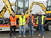 HENTET FEM: Foran fem elektriske minigravere lastet på bilen fra Skedsmo Bud & Vare, ser vi fra venstre: Knut Magnus Brentebråten (daglig leder Akershus Maskinutleie), Petter Skaare (distriktssjef Hesselberg), Terje Ørehagen og Are Sparby (salgssjef Hesselberg)