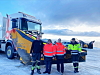 PRESIS VEIDRIFT: Fra brøytestasjonen er det kortere vei når det er behov for tiltak på E69: Brøytesjåfør Justinas Valaitis fra Presis Vegdrift, Oddbjørg Mikkelsen og Lena Brøx fra Statens vegvesen og Ib Nymark fra Presis Vegdrift.Hege Strøm / Statens vegvesen