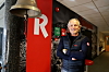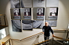 FAR OG SØNN: Bjørn ser på bildet av sin far Bjarne. Bildet henger i trappeoppgangen til et møterom A&T intervjuet Bjørn Risa.Anlegg&Transport