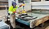 Støv oppstår spesielt i selve spalteprosessen når hoggerne kløver en steinblokk.