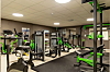 med stue og kjøkken, samt et fullverdig treningsstudio.