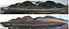FØR/ETTER: Ovenfor: Dronebilde av Svea sett fra Barryneset, tatt i 2019 før opprydningsarbeidet. Nedenfor: Dronebilde fra samme vinkel, tatt i 2023. Bildene viser de omfattende endringene i landskapet etter at nesten alle spor etter gruvebyen er fjernet.