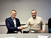 SIGNERT KONTRAKT: Knut Arild Flatjord, konsernsjef og leiar SFE Produksjon og Mads Skipenes Aniksdal, prosjektsjef i Skanska Anlegg, under signeringen av kontrakten om byggingen av nye Øksenelvane kraftverk.