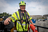 - Dersom ulykken først skjer, har vi etablert en rekke livreddende tiltak. Alle som befinner seg nærmere enn 10 m fra kanten av sjøfyllinga benytter redningsvest med surstofflaske og munnstykke. Denne er av samme type som benyttes av helikopterpiloter i redningstjenesten og ved helikoptertransport i Nordsjøen. Løsningen er utarbeidet i samarbeid med Hansen Protection AS, forteller Thorfinn Gjerde, HMS-leder i Hæhre Entreprenør.