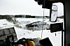 I hytta er det glass rundt baut og uten forstyrrende stolper. Sikten ned på skuffe/pallegafler etc., er meget god, om vi forstår maskinførerne rett.