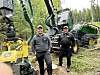 NY: Tobias (t.v.) og Roy Teigberget ved en av de nye JD-maskinene, hogger’n 1070G.