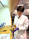 Forsker Hege Hollund ved Arkeologisk museum, Universitetet i Stavanger leder utgravningen utenfor Stavanger Domkirke. Her analyserer hun en hodeskalle.Foto: Anniken Celine Berger