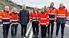 LYKKELIG DAG: En gledens dag for noen av nøkkelpersonene i prosjektet, fra venstre: Stein Ivar Hellestad, konsernsjef Skanska, May Bente Hiim Sindre (prosjektleder Statens vegvesen), Jon-Ivar Nygård (samferdselsminister), Kjell Inge Davik (utbyggingsdirektør, Statens vegvesen), Ingrid Dahl Hovland (vegdirektør), Jon Mikkel Haugen, prosjektleder Skanska og Lars Helge Dokken (Skanska).