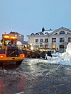 60 ENHETER: Aktiv Veidrift har tirsdag 60 enheter ute å rydder snø. Her er to av dem på Bragernes Torg i Drammen.