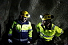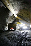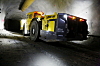 Vi har gått opp til en av stuffene og hører snart en svak summing lenger nede i tunnelen. Opp den bratte bakken og rundt en sving kommer AF Ghellas Scooptram og Minetruck for å laste sprengstein. Man hører egentlig mest hydraulikken og knastelyden fra dekkene mot underlaget. Maskinene har også vist seg å være raske, særlig i motbakker med last hvor de klarer høyere hastigheter enn dieseldrevne maskiner.