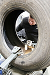 MOTVEKTSTRUCK: Gummiservice Produksjon AS lager vinterdekk til motvektstrucker.Fredrik Saugstad