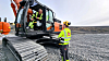 Maskinførerne Torstein Langdalen (i førerhuset) og Kristian Skrokbæk kjører de to nyeste Hitachi Hitachi ZX350LC-7 Super Long Front ved rasgropa i Gjerdrum.
