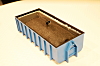 I containeren siles vannet ut gjennom filteret og kan tappes via en åpning på kortsiden.