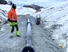 Rørene er for det meste lagt ut. Det ser litt spesielt ut der de ligger rett på bakken