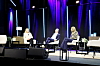 DEBATT: Vegdirektør Ingrid Dahl Hovland (f.v.) i diskusjon med nestleder Roger Ingebrigtsen i Maskinentreprenørenes Forbund (MEF) og MEF-sjefen Julie Brodtkorb.Anlegg&Transport